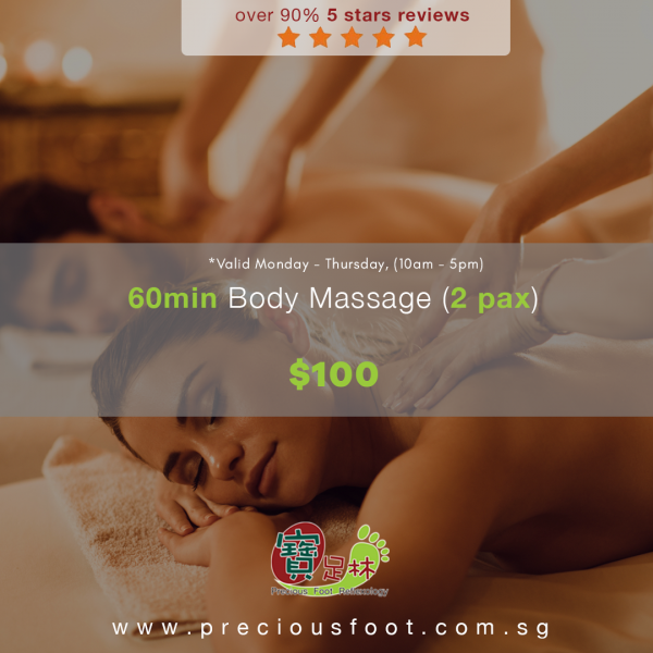 Precious Foot Reflexology Singapore Body Massage Promotion. Enjoy this year end promotion from Singapore’s best foot reflexology and massage chain. Enjoy the special rate of only $98 for 2 60 mins body massage for you and your special one. This is a special year end promotion that is available only till 31st December 2017. Follow us on facebook and instagram for more promotions like this.